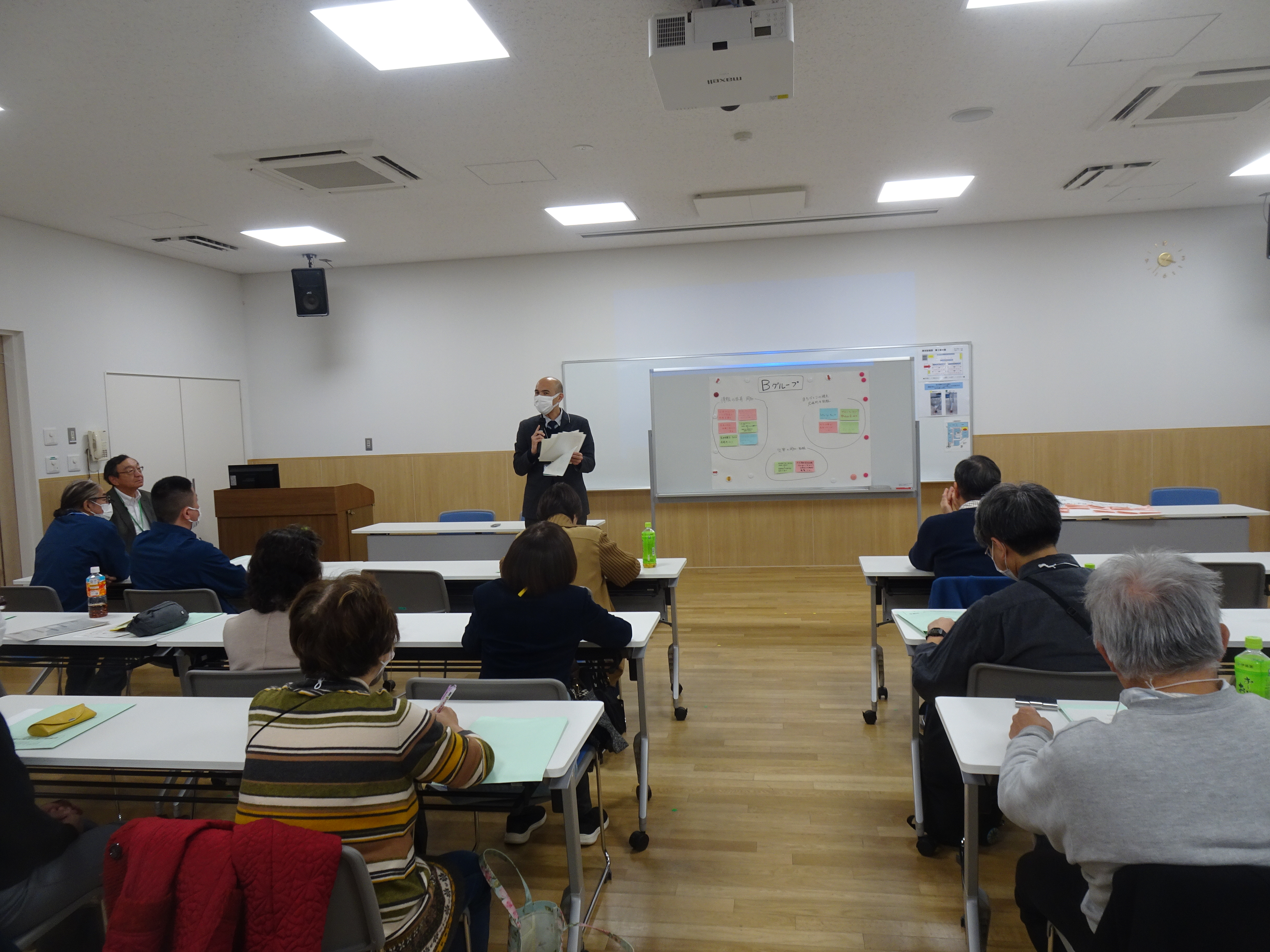 最後に全体会議で各グループの討議の報告があり、阿佐谷地域区民センター協議会の会長の講評・閉会挨拶を受け、解散と